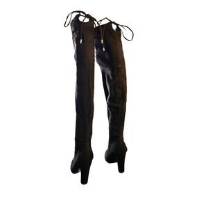 Zigi Soho Bryna Embroidered Zip Over the Knee Heeled Boots Sz 6 Vegan Suede