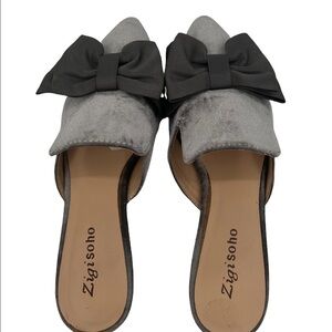 Zigi Soho Gray Carlyne Velvet Bow Mule Pointed Toe Slides Size 7 Women’s