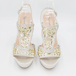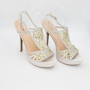 Zigi Soho Sandals SUNELLE Silver Satin Crystal Rhinestone Jeweled Heels Size 10