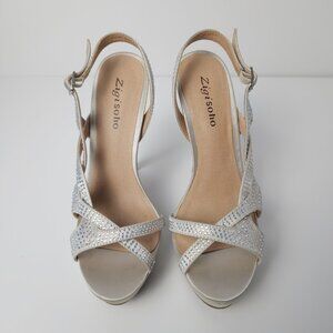 Zigi Soho Silver/Tan Iridescent Rhinestone Heels - Size 7.5 - New