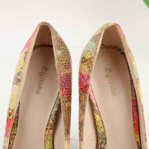 ZigiSoho Womens Jaclyn Pumps Size 8 Tan Red Python Wood Heel Platform Y2K Shoes