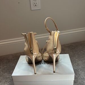 Elevate your look with these Zigisoho heels, featuring a chic strappy design and a sleek stiletto heel. The smooth leather straps elegantly wrap around the foot and ankle, offering a secure fit with a stylish buckle closure. Perfect for formal occasions, these open-toe sandals add a touch of sophistication to any outfit.