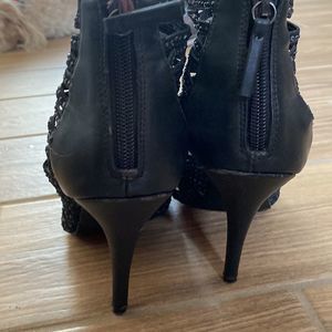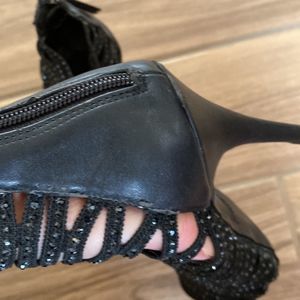 Zigisoho- Black sparkle rhinestone lattice heels- Womens size 8.5