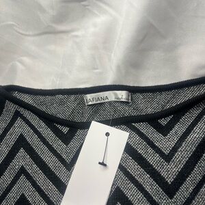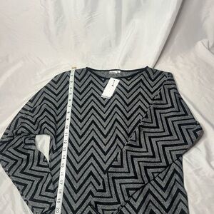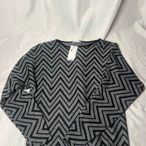 Upgrade your style with the Rafiana long sleeve top, showcasing a striking black and gray zigzag design. Ideal for a chic and modern look.