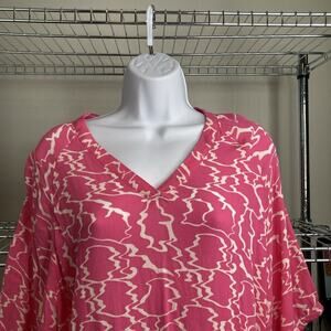 Zilch Pink/White Patterned Half Sleeve Maxi Dress Sz S Flowy Spring Summer
