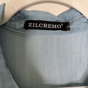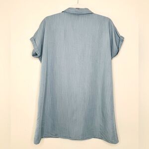 Zilcremo Casual Blue Denim Button Up Mini Shirt Dress