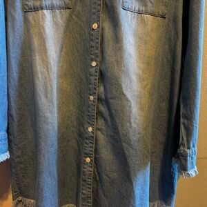 Zilcremo Women Denim Button Down Shirt Dress Long Sleeve Distressed Jean Sz L