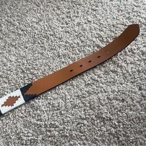 World-class light brown Argentine leather with black & white nylon thread, artfully hand-stitched in Buenos Aires.
