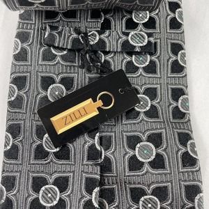 Zilli Gray Black Floral Geometric Mens Pure Silk Tie 3.75 Inch Width NWT