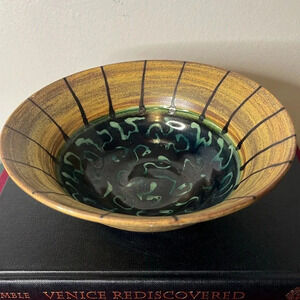Zimmer Pottery Vintage Ceramic Artisen Drip to Squiggle Glazed Fruit Bowl