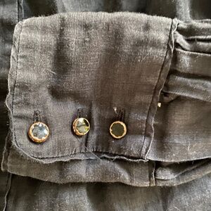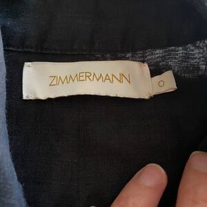 Zimmerman Button Down Ruffle Black Ramie Blouse Shirt Top Size O