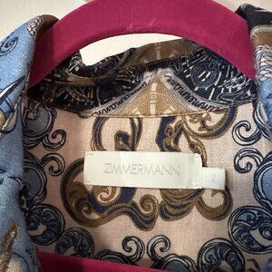 Zimmerman Dress Linen Blue Multicolor Aliene Mini Sea Sz 2