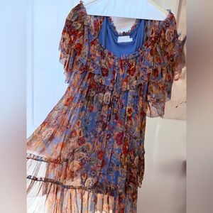 Elegant fall floral dress with delicate ruffle trim by Zimmerman. Comes with matching belt that can be worn in or off. Non Smoking home. Medium/8. No tears or stains.
