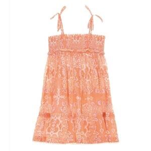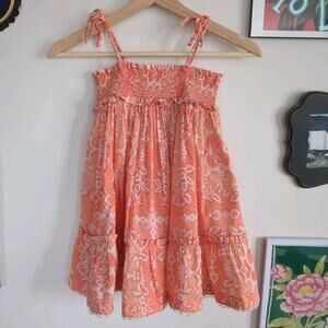 Zimmerman Kids' Raie Shirred-effect Botanical Cotton Dress In Orange Size 4