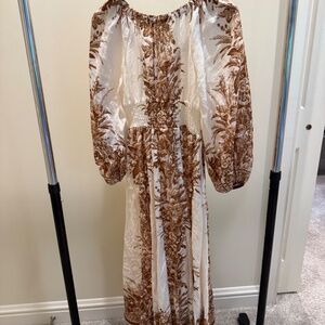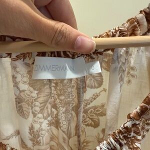 Women’s size zero Zimmerman long linen tent dress with neutral florals. This dress retails $1,200 and the real real is selling it for over $400. This is excellent condition and won’t last.