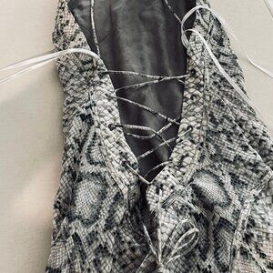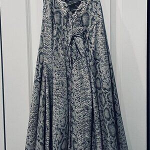 Zimmerman Python Print Halter Sundress - Size 1 (2 US), halter front, lace up back, strapless, full skirt, fully lined, brown, white print, Bust 28", Waist 28", Length 50"