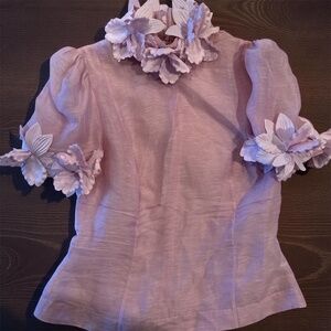 Incredible design with stand up orchids on linen matching pieces by Zimmerman size 1 (approx size 4 US) worn once, unfinished edges on linen orchids, tags removed beautiful ensemble, skirt and top both size 1 in Zimmerman