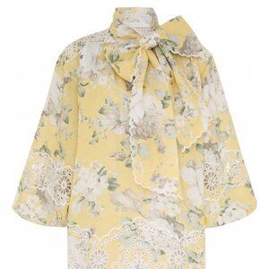 Zimmerman Summer Fashion Retro Linen Embroidery Yellow Short Skirt
