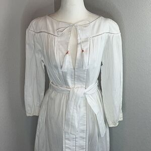Zimmerman White Cotton Long Sleeve Belted Maxi Zim Sz 0/ Small/ US 4