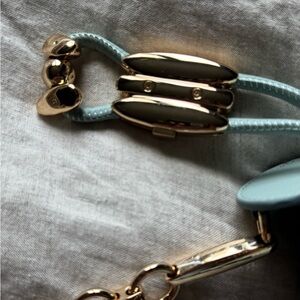 The ultimate in day-to-night dressing, the Halcyon Clutch is defined by its ruched silhouette, complemented by decorative gold beads that evoke pebbles collected on the shore. Crafted from soft calfskin leather, the clutch features a bespoke surfboard-inspired gold chain, highlighting the elegant fusion of the Australian surfing culture and European equestrian style.