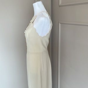 Worn several times. Lovely dress. Fits like a dream. Slight wear throughout. I tried to get pics of any discoloration or threads pulling. May just need to be dry cleaned. Color is off white /cream. Size is a Zimmerman 1 and I wear a U.S. 2 usually