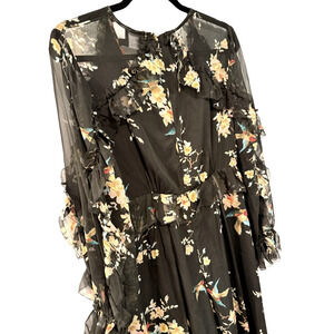 Zimmermann 1/ US 6 Maples SILK $995 Feathery Jumpsuit Wide Leg Maxi Dress Black