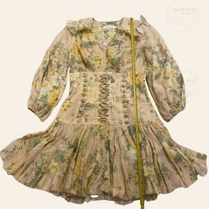 Zimmermann 2 US 6 Amelie Corset Dress | Floral Romantic Feminine Linen Mini $795