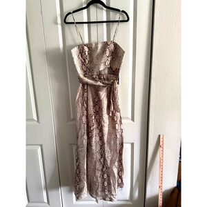 Zimmermann 3 Bellitude 100% LINEN Python Snake Print Midi Dress Neutral Tan 10