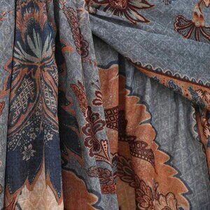The Ascension Plunge Halter Maxi in Blue/Cream Indienne Floral from our Summer Swim 2025 Collection. A cotton halter neck maxi dress featuring a dramatic plunging V-neckline, fitted waist with exposed sides and an open back with self tie beaded drawstrings, finished with a flared skirt detailing.