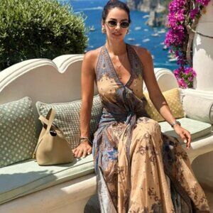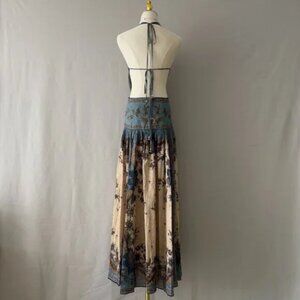 Crafted of printed cotton, Zimmermann's Ascension halter maxi dress is styled with a plunging V-neck, a twisted front, and side cut outs.
