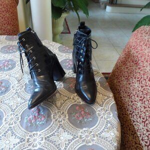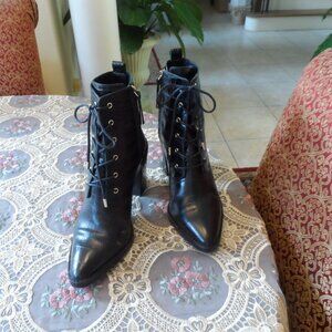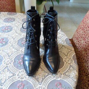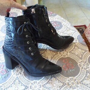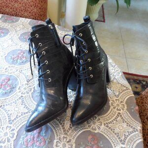 Zimmermann Black Croc Embosed Leather Lace Up Ankle Boots Size 10M