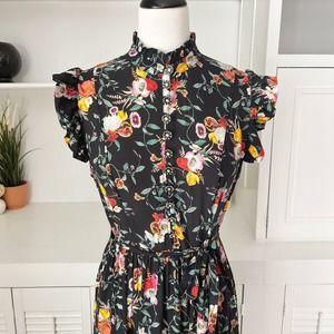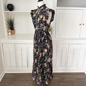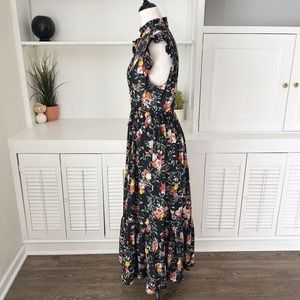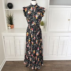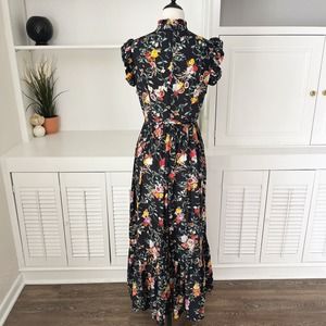 Zimmermann Black Floral Elka Vine Print Silk Frill Midi Dress Size 6/S