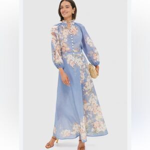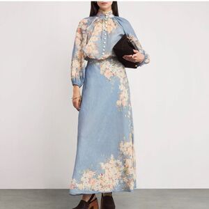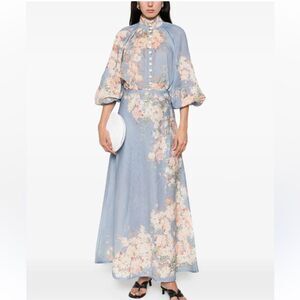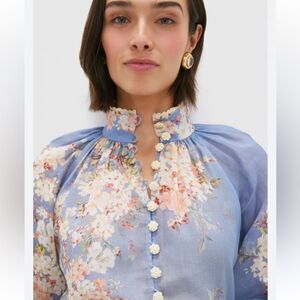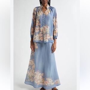 Zimmermann Blue Floral Long Sleeve blouse and skirt set size2