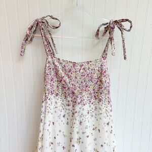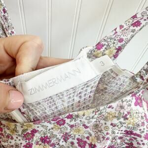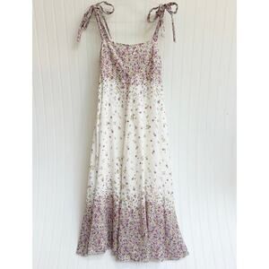 Zimmermann Carnaby Tie-Strap Floral Midi Dress White Pink Ombre Large