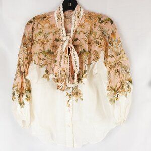Chintz Tie-Neck Blouse - Brand Size 0P (US 0-2)