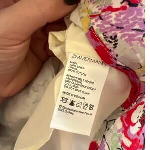 Zimmermann Clover Belted Linen Floral Fit & Flare Puff Sleeve Dress Size 1 US 4