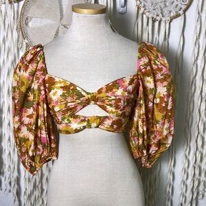 Zimmermann Cropped Cutout Floral Print Puff Sleeve Top Cotton Gauze Size 0