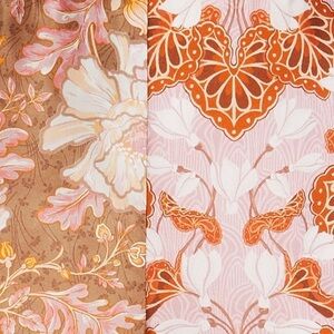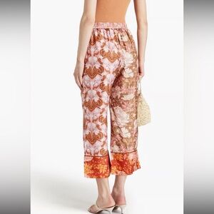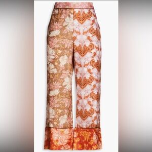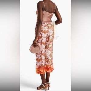 Elevate your style with these vibrant floral patterned wide-leg pants. Featuring a blend of orange, pink, and brown hues, these pants offer a bold and fashionable look. Perfect for any occasion.