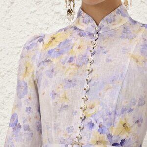 Zimmermann Crush Buttoned Mini Shirt Dress Lilac Floral AU0