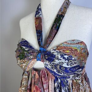 Zimmermann Devi Mixed Print Halter Neck Silk Dress - Patch Paisley Sz 0P / US 2