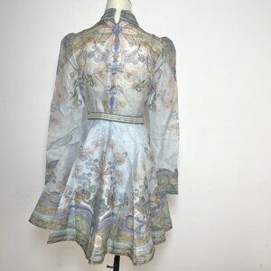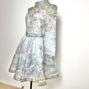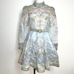 Zimmermann Eden Belted Long Sleeve Linen & Silk Minidress