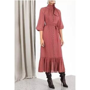 Zimmermann Esponage Silk Neck Tie Bow Midi Dress Belt Sz 4 XS , S