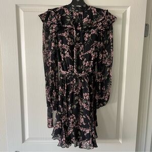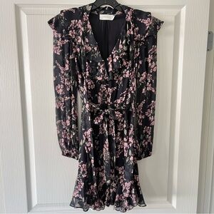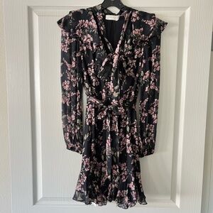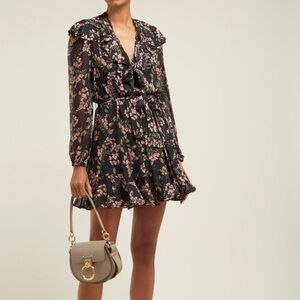 Zimmermann Floral Ruffle Mini Dress - Black - Size 0
