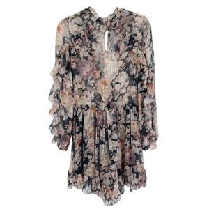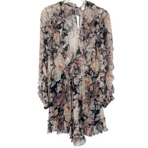 Zimmermann Floral Ruffle Playsuit Size 1 US Size 6 100% Silk Long Sleeve Romper