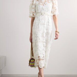 Zimmermann Halliday belted recycled-guipure lace midi dress