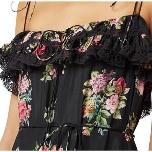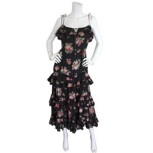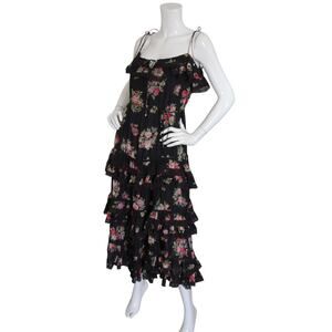 Zimmermann Honour Floral Print Silk Habutai Tiered Midi Dress Black