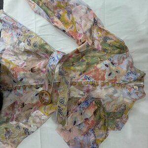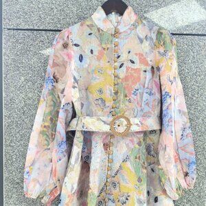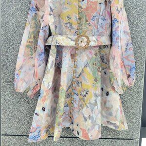 Zimmermann Illustration Buttoned Belted Floral Linen Mini Dress size 0