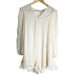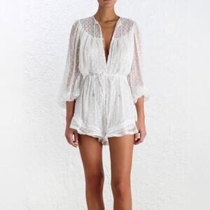 Zimmermann Ivory Belle Web Dot Sheer Long Sleeve Silk Playsuit Romper Size M