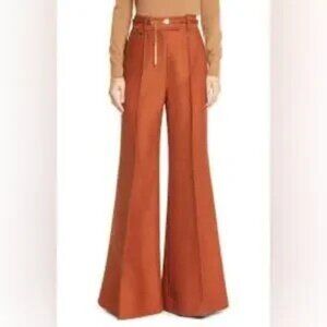 Zimmermann Kaleidoscope Brick Wool Wide Leg Pants with Belt Size 0