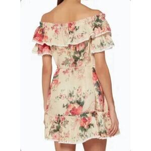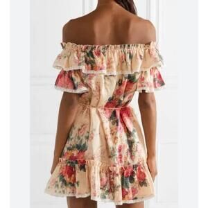 Zimmermann Laelia Frill Tier Short Mini Dress Off Shoulder Floral Linen 2 US 8